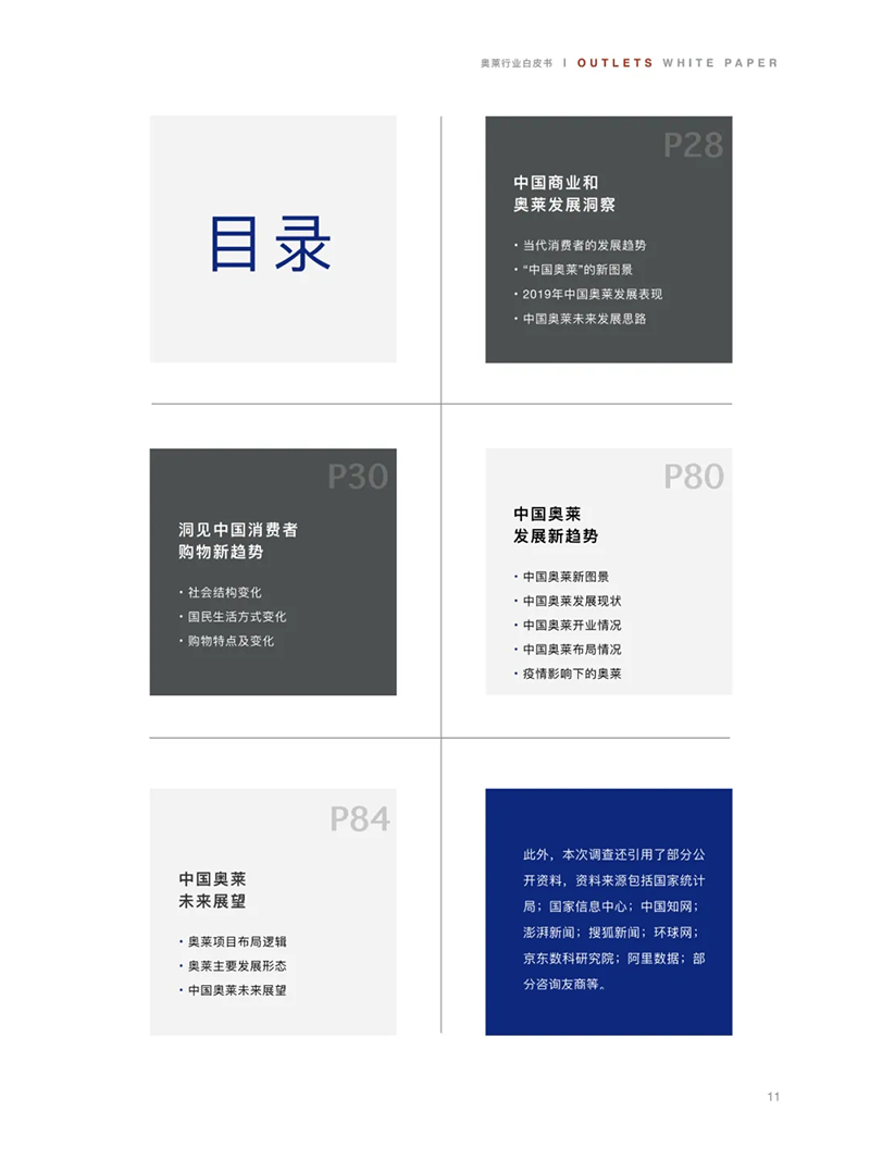 為了及時總結(jié)中國奧萊的發(fā)展狀況和運營經(jīng)驗,引導(dǎo)中國奧特萊斯產(chǎn)業(yè)在后疫情時代的健康、快速發(fā)展,我們組織編寫了這部《2020中國奧特萊斯行業(yè)白皮書》。我們基于對后疫情時代中國經(jīng)濟的內(nèi)生動力,以及中國消費格局、消費趨勢新變化的深?分析,并通過線上問卷調(diào)查與線下深度訪談相結(jié)合的方式,客觀分析了中國奧特萊斯的發(fā)展表現(xiàn),綜合闡述了中國奧特萊斯的未來發(fā)展思路。