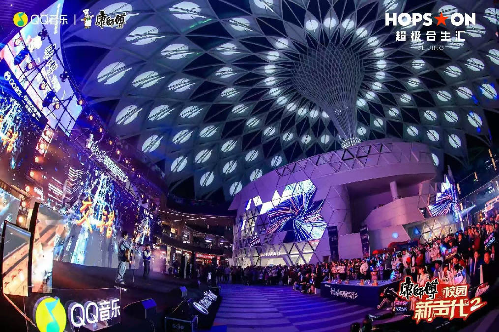 亦可發(fā)揮“穹頂廣場(chǎng)”強(qiáng)大的可塑性舉辦各類(lèi)新消費(fèi)場(chǎng)景主題活動(dòng),例如前不久與QQ音樂(lè)、康師傅聯(lián)合舉辦“校園新生代第二季-北區(qū)半決賽”,錨定Z世代年輕客群,以線(xiàn)上線(xiàn)下多渠道宣發(fā)的推廣方式,穹頂之下,北京超極合生匯以音樂(lè)和運(yùn)動(dòng)為基調(diào)引爆全城熱點(diǎn),打造現(xiàn)象級(jí)營(yíng)銷(xiāo)活動(dòng),當(dāng)日全場(chǎng)客流較平日提升50%,帶動(dòng)場(chǎng)內(nèi)銷(xiāo)售環(huán)比提升20%。