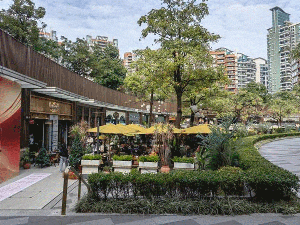 ◎廣粵天地整體為圓形布局,環(huán)繞于街心花園與步道,內(nèi)環(huán)是商業(yè)空間,外環(huán)是高檔社區(qū)。這是公園?還是住宅區(qū)?還是商場(chǎng)?