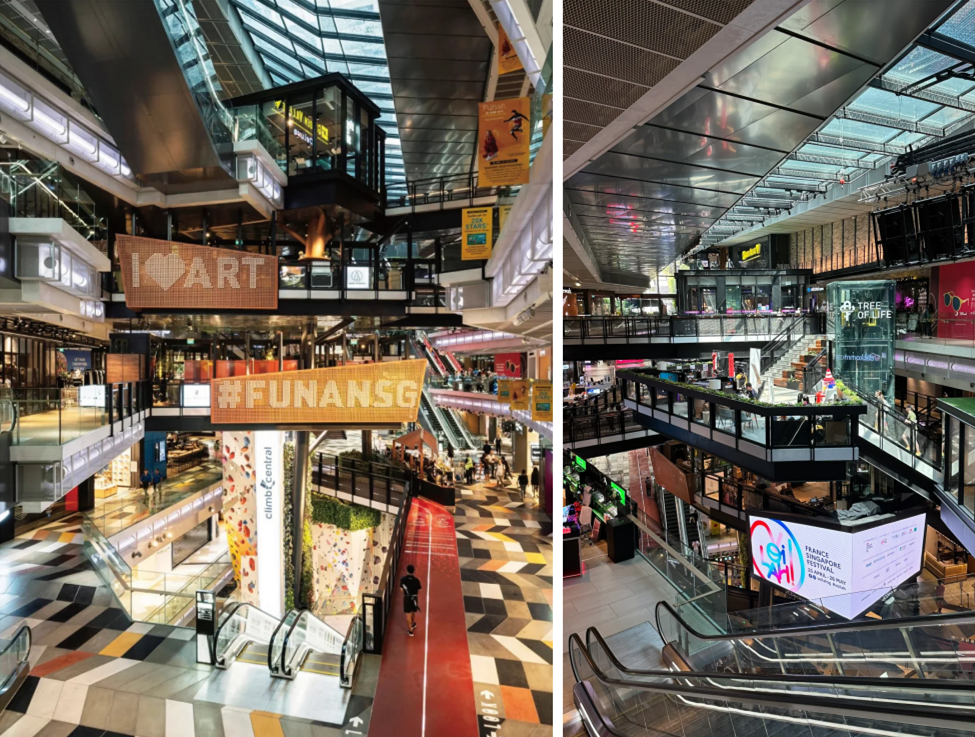◎前身是數(shù)碼商城的新加坡FUNAN,以錯(cuò)落的樓梯,突破了傳統(tǒng)商業(yè)體乏味的水平動(dòng)線,增添空間的趣味性,還切割出了大量公共區(qū)域,設(shè)置200米橫穿室內(nèi)的自行車(chē)道,打造成為新加坡首個(gè)騎行友好商場(chǎng)。