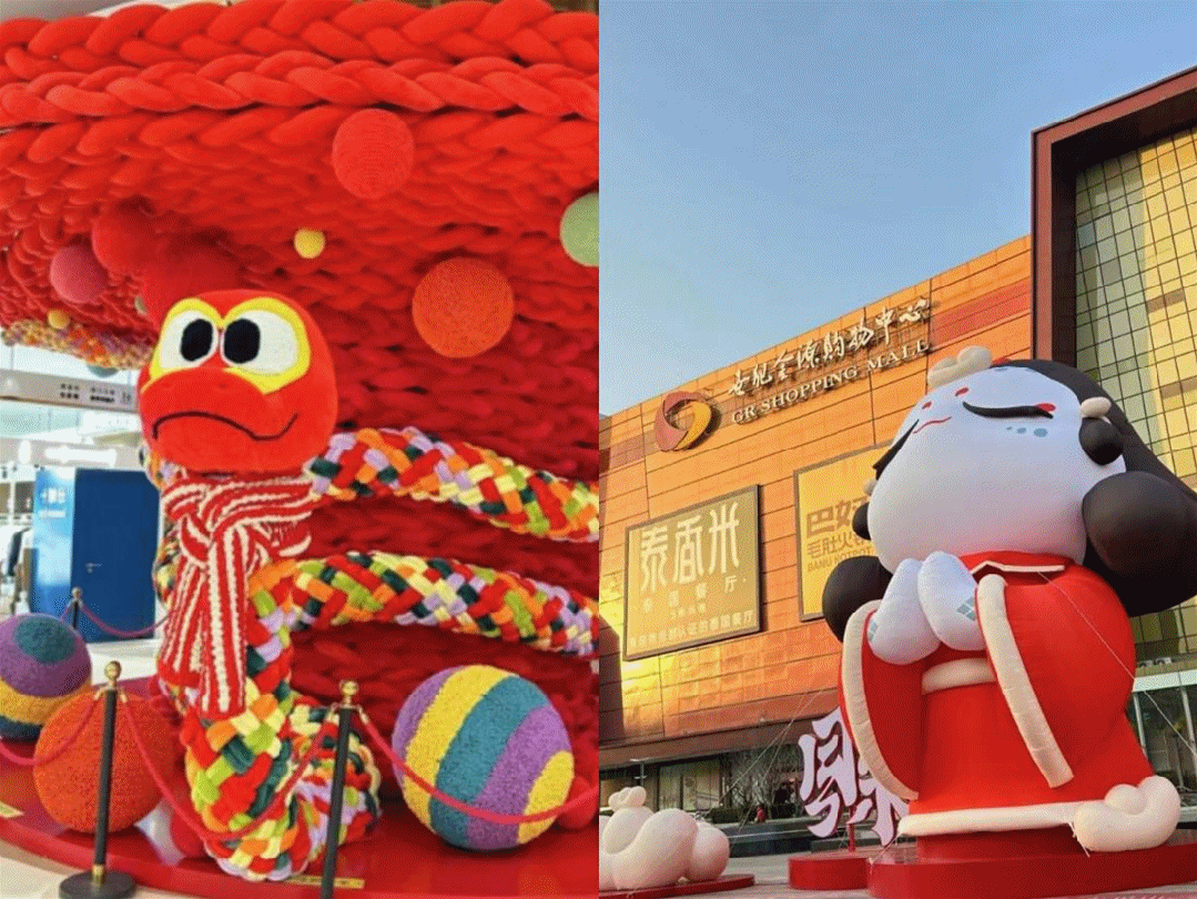 IP和首展同樣是營造氛圍的關(guān)鍵元素。北京世紀(jì)金源購物中心特別引進(jìn)了“財(cái)神女官——財(cái)來來”這一蛇年專屬的IP形象,并匠心獨(dú)運(yùn)地將毛線工藝與蛇形元素結(jié)合,創(chuàng)造出名為“神蛇許愿樹”的藝術(shù)裝置。廈門杏林萬達(dá)廣場利用卡通IP形象進(jìn)行展示,IP希寶HEEBO的一個(gè)顯著優(yōu)勢在于其能將生肖形象萌化,這樣使通常被認(rèn)為較為令人畏懼的形象更容易獲得人們的喜愛。