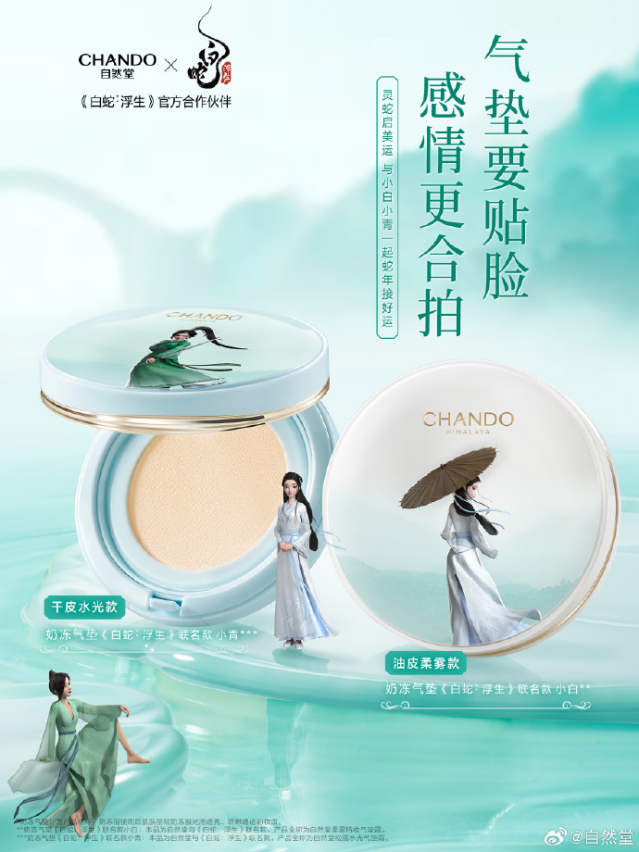 在2024年,《白蛇3:浮生》不僅打破了七夕檔期動(dòng)畫電影的累計(jì)票房紀(jì)錄,而且白蛇IP還借此機(jī)會(huì)與金石盟珠寶、北京一卡通、YHD羊很大、芬蘭珠寶FEO等眾多品牌合作推出聯(lián)名產(chǎn)品。隨著蛇年?duì)I銷活動(dòng)的啟動(dòng),《白蛇3:浮生》迎來了聯(lián)名產(chǎn)品的“第二春”。自然堂與《白蛇3:浮生》的聯(lián)名款氣墊推出后,緊接著“自然堂蛇年生肖禮盒”也相繼問世。